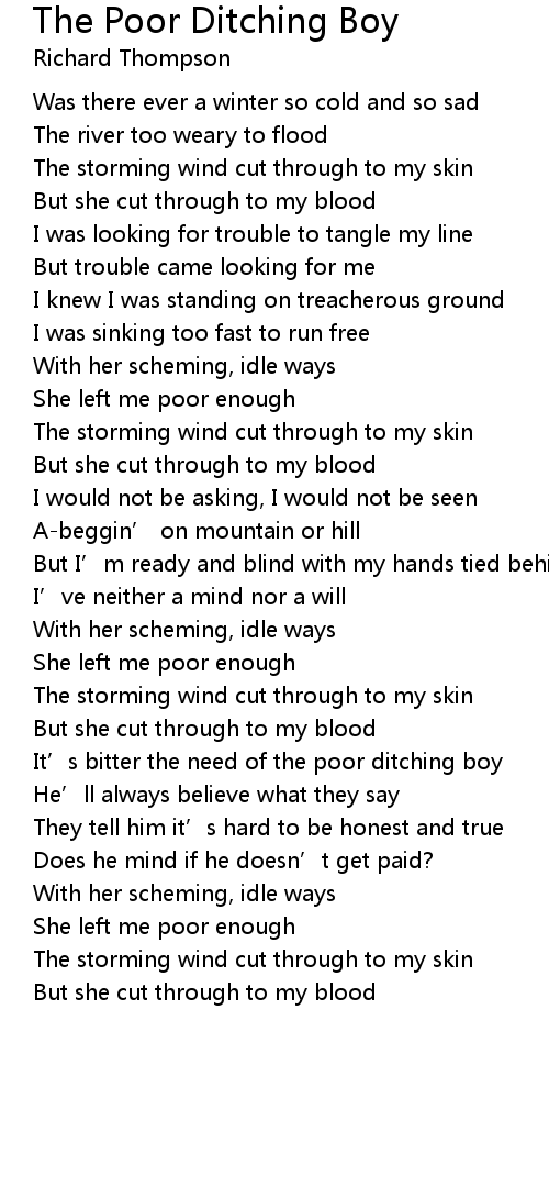 | It' s bitter the need of the poor ditching boy | |
