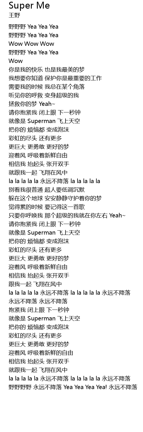 | [02:11.99] | zhǐ yào nǐ hū huàn wǒ nà gè chāo jí de wǒ jiù zài nǐ zuǒ yòu Yeah |