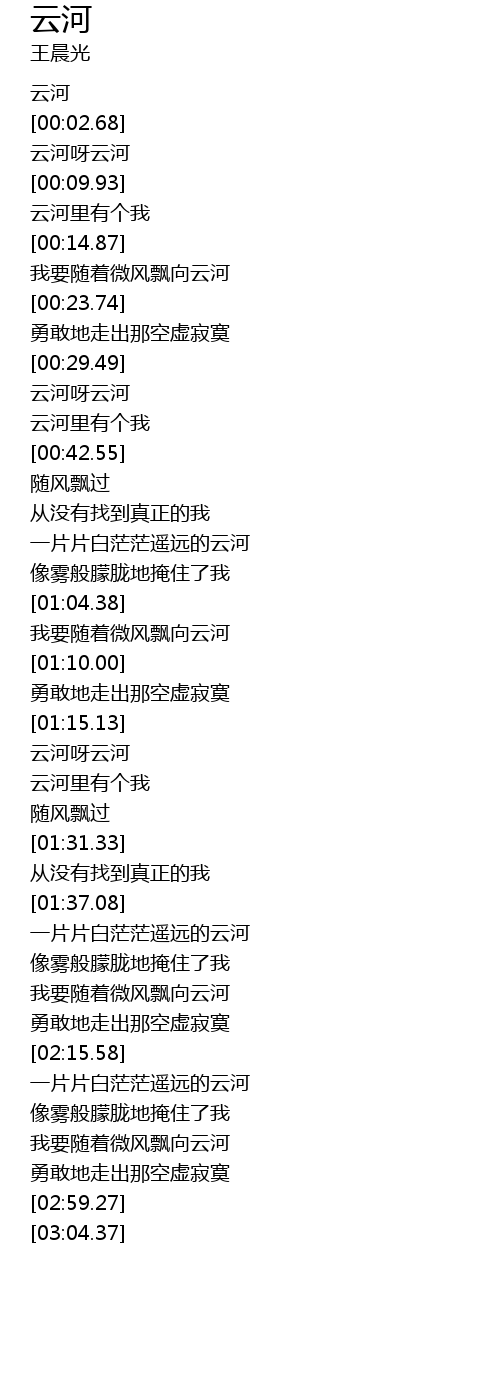 | [02:38.63] | 一片片白茫茫遥远的云河 |