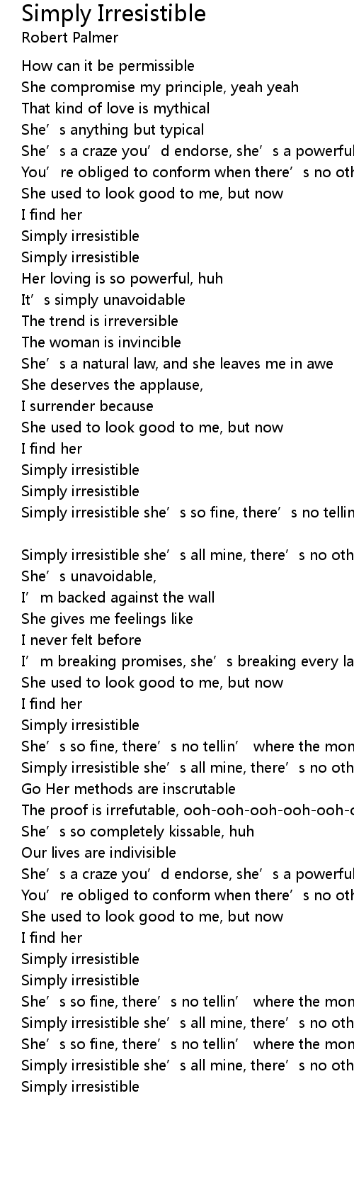 | Simply irresistible she' s all mine, there' s no other way to | |