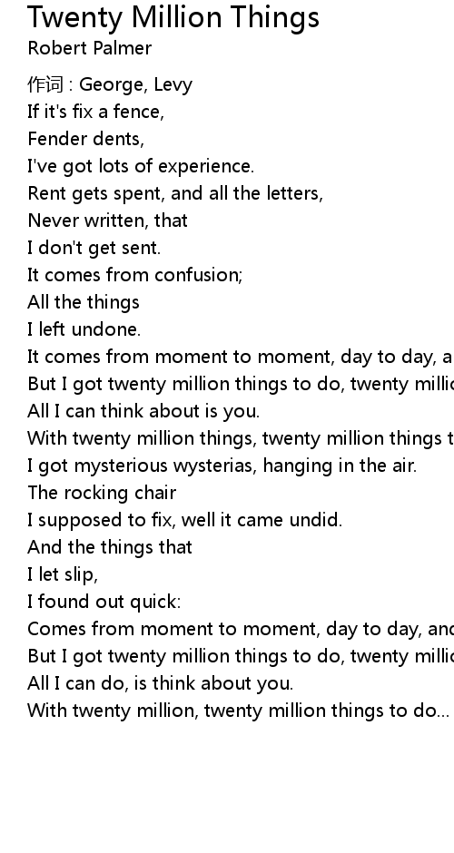 | With twenty million things, twenty million things to do. | |