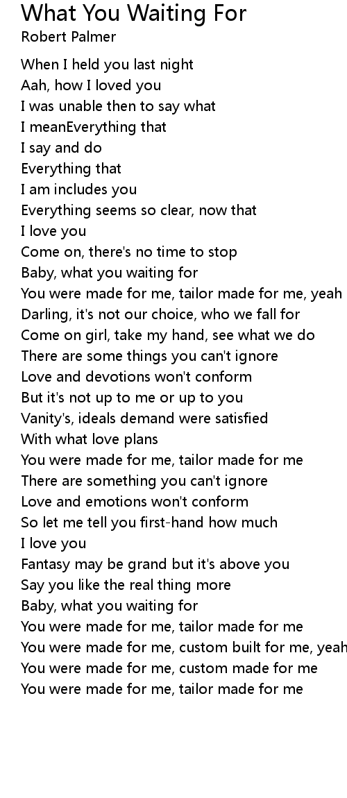 Baby, what you waiting for |