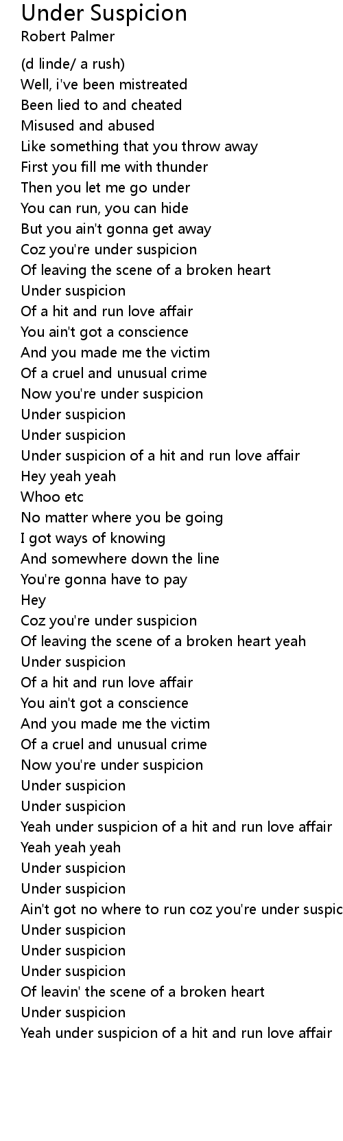 Yeah under suspicion of a hit and run love affair |