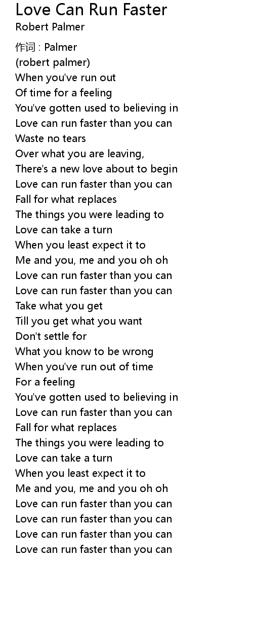 | Love can run faster than you can |