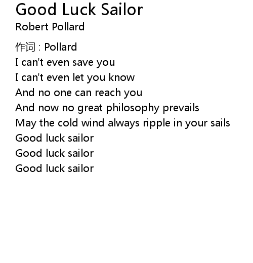 | Good luck sailor | |