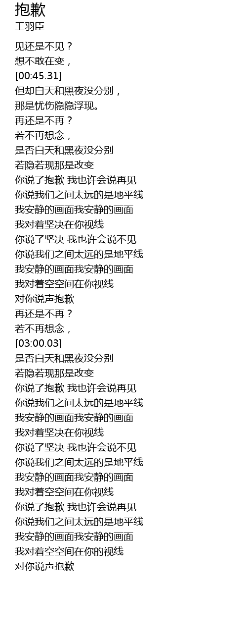 | [02:18.14] | 对你说声抱歉 |