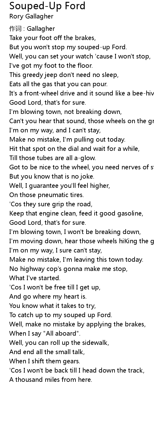 | I'm moving down, hear those wheels hiKing the ground. | |