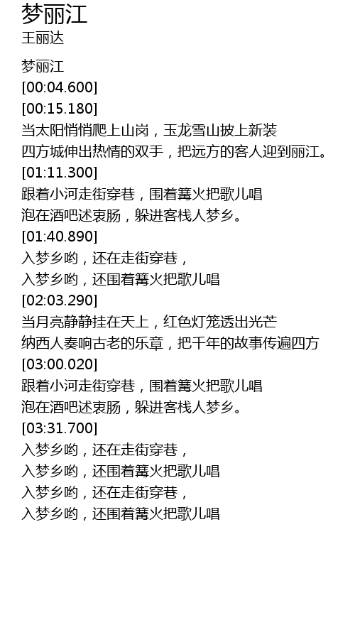 | [00:02.530] | 梦丽江 |