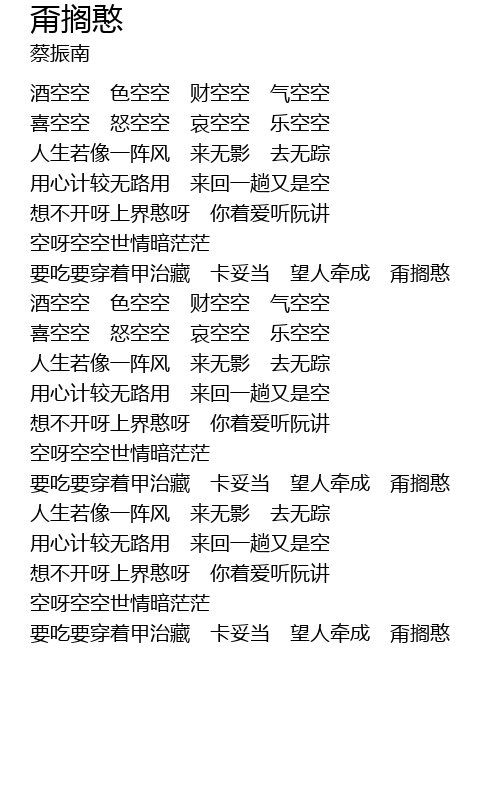 | [00:40.00] | 酒空空 色空空 财空空 气空空 |