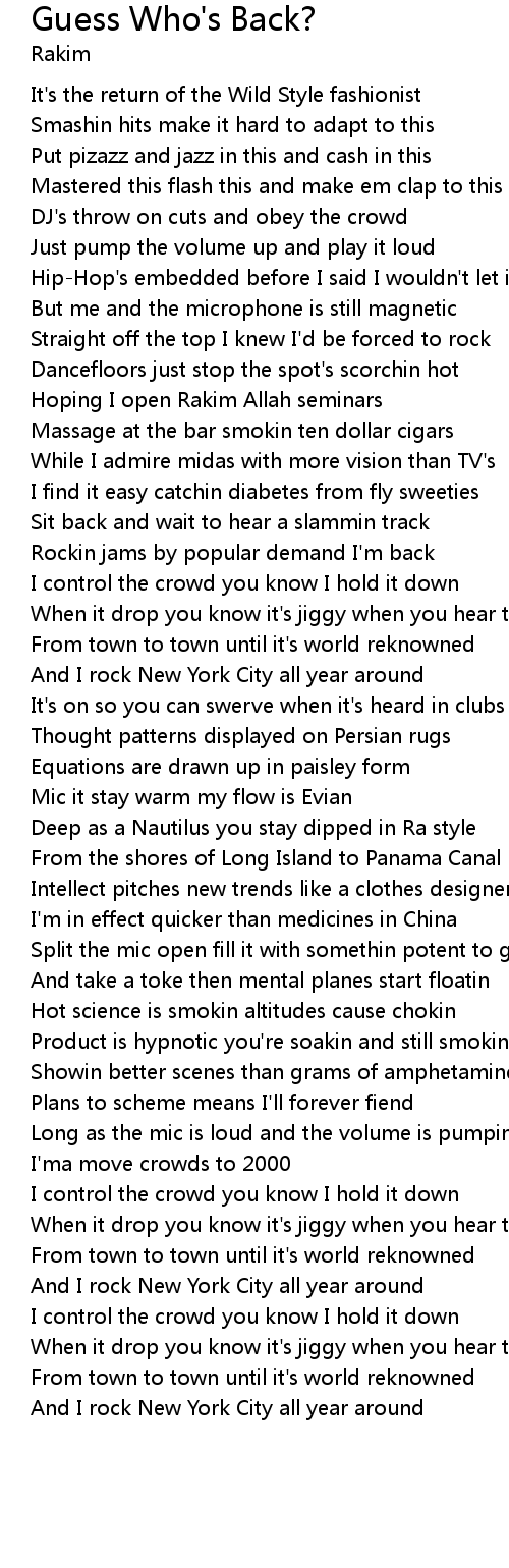 | [00:50.23] | Rockin jams by popular demand I'm back |
