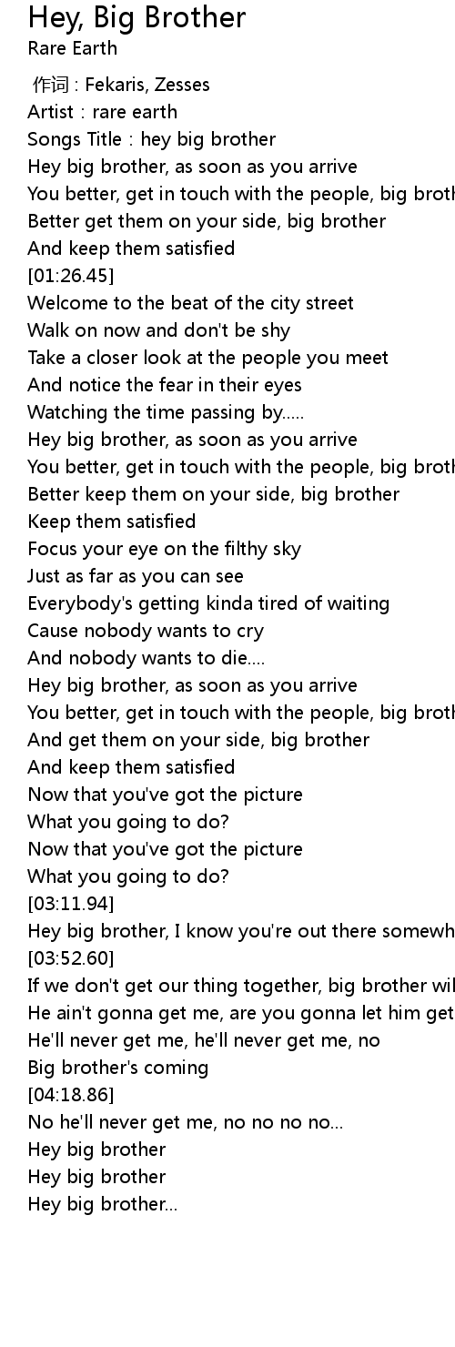 | [03:50.72] | Hey big brother, I know you' re out there somewhere |