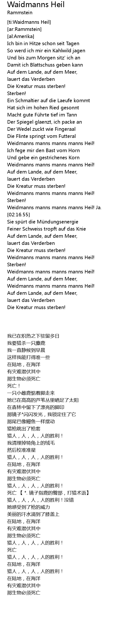 | [02:02.81] | Weidmanns manns manns manns Heil! |