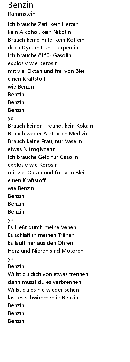 | [01:37.44] | Ich brauche l fü r Gasolin |