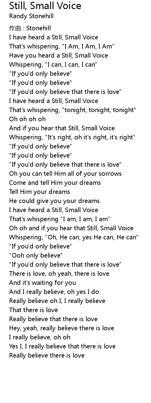 | Whispering, " Oh, He can, yes He can, He can" | |