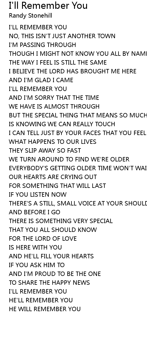 I'LL REMEMBER YOU |