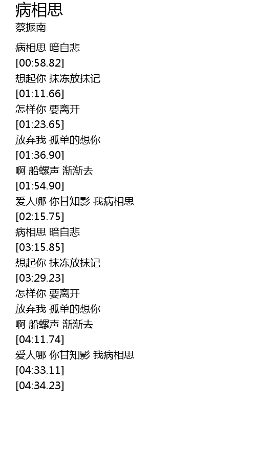 | [04:13.49] | 爱人哪 你甘知影 我病相思 |