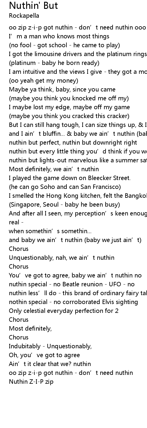 | oo zip zip got nuthin don' t need nuthin ooo | |