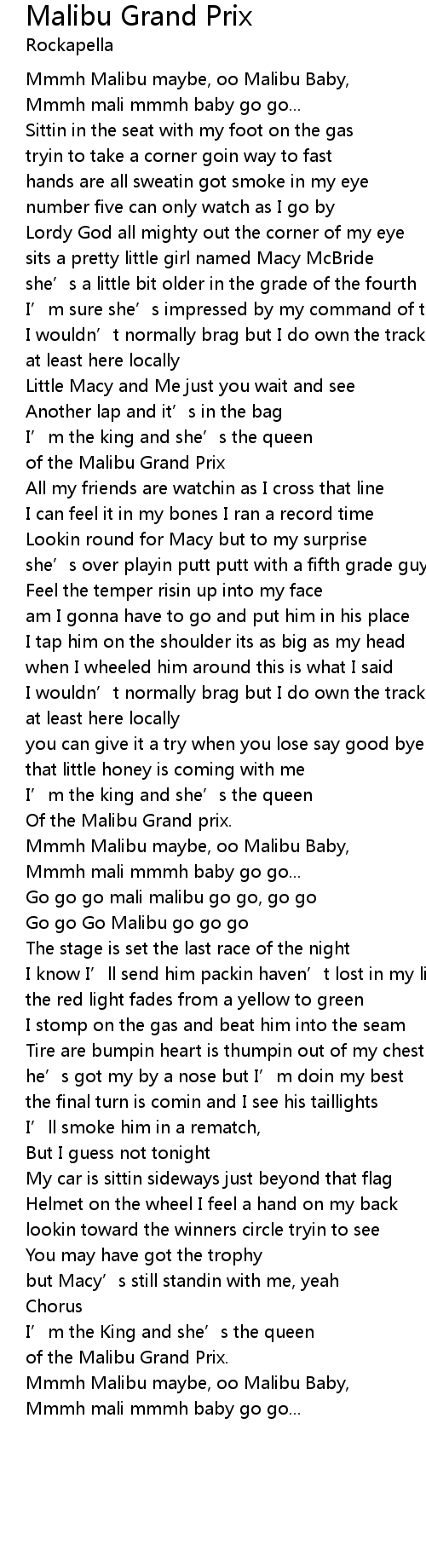 | Song | Malibu Grand Prix |