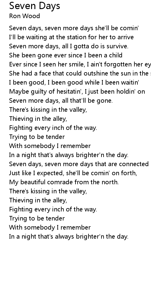 Seven days, seven more days she'll be comin' |