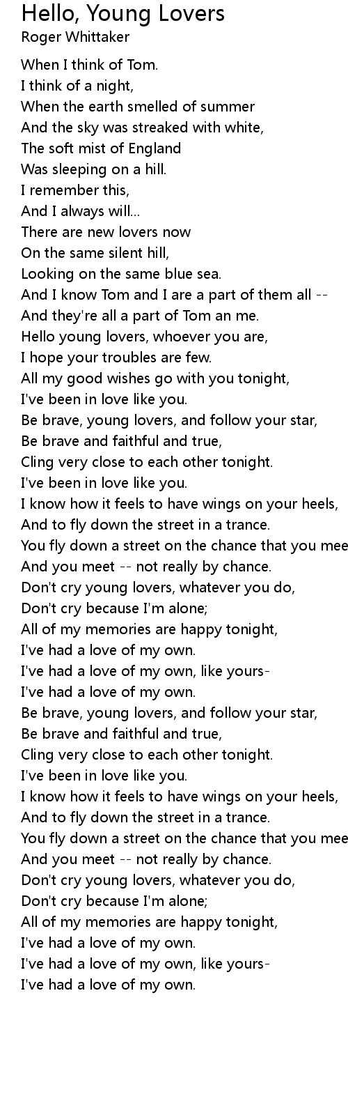 Hello young lovers, whoever you are, |