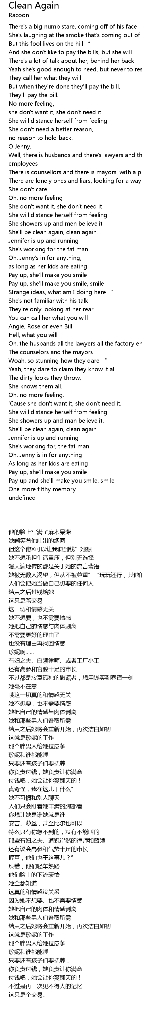| [01:37.28] | She' ll be clean again, clean again. |