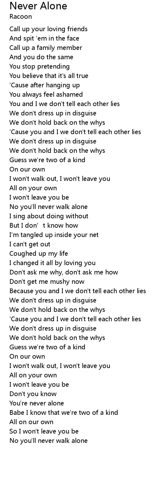| No you'll never walk alone | |