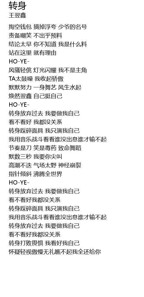 | [01:20.46] | zhuǎn shēn fàng qì guò qù wǒ yào zuò wǒ zì jǐ |