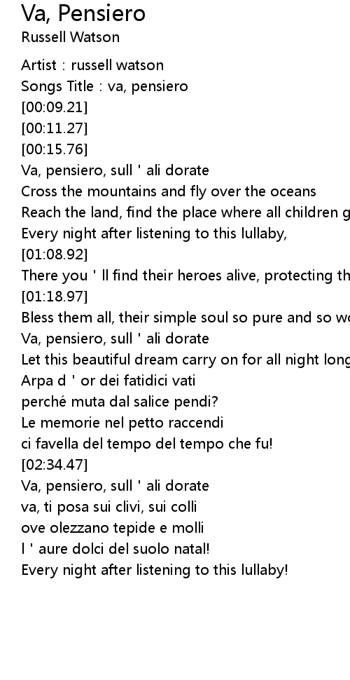 | [02:58.80] | Va, pensiero, sull'ali dorate |
