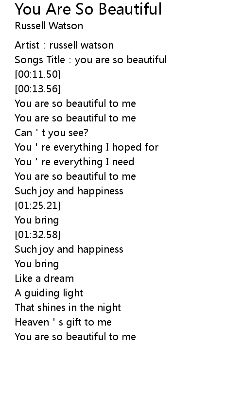 | [00:05.09] | Songs Title: you are so beautiful |