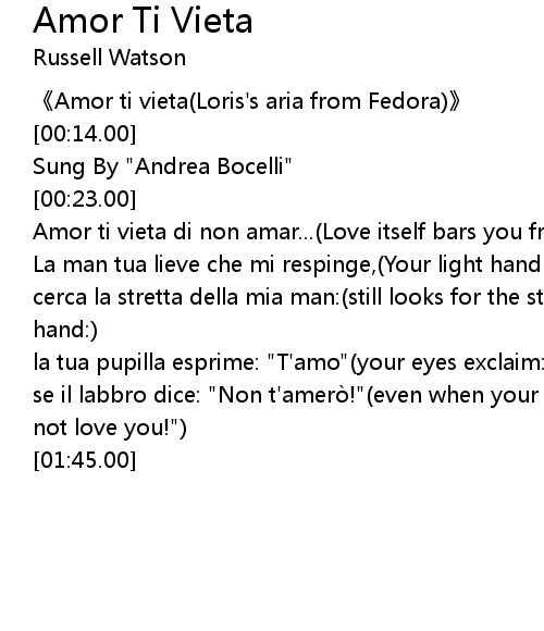 | [00:24.00] | Amor ti vieta di non amar... Love itself bars you from not loving... |
