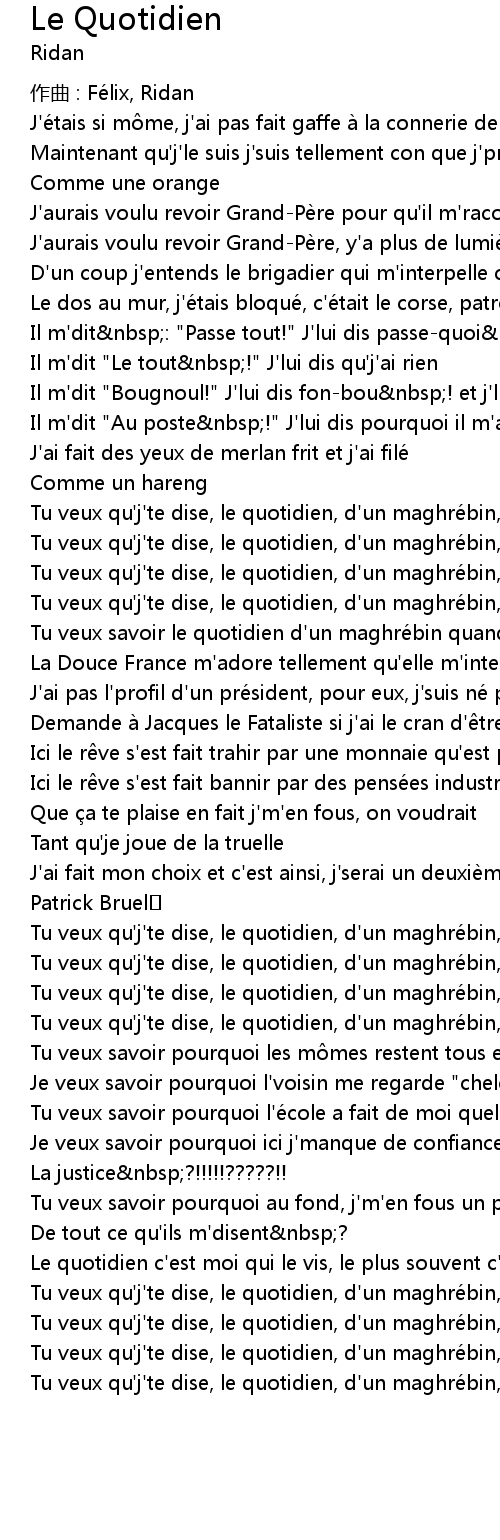 | Tu veux qu' j' te dise, le quotidien, d' un maghre bin, quand t' as vingt ans nbsp? | |
