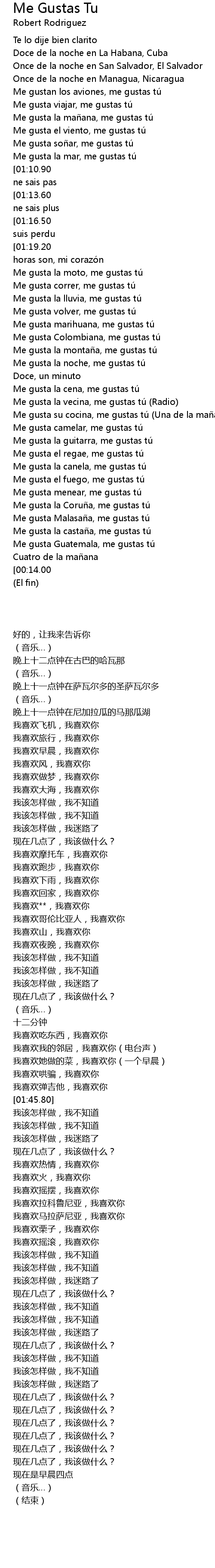 | [01:45.80] | Me gusta el regae, me gustas tu |