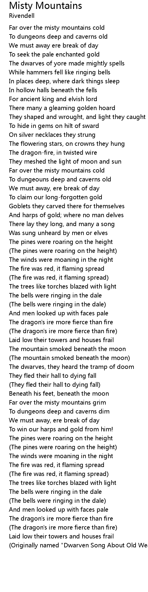 (Originally named "Dwarven Song About Old Wealth" by Tolkien) |