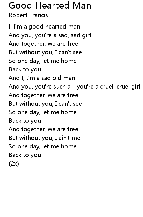 | I, I'm a good hearted man | |