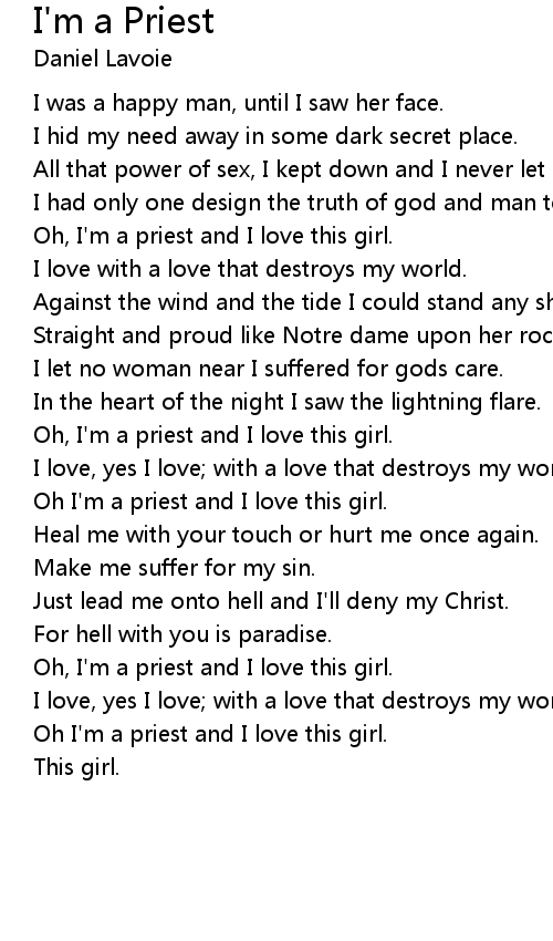 Oh I'm a priest and I love this girl. |