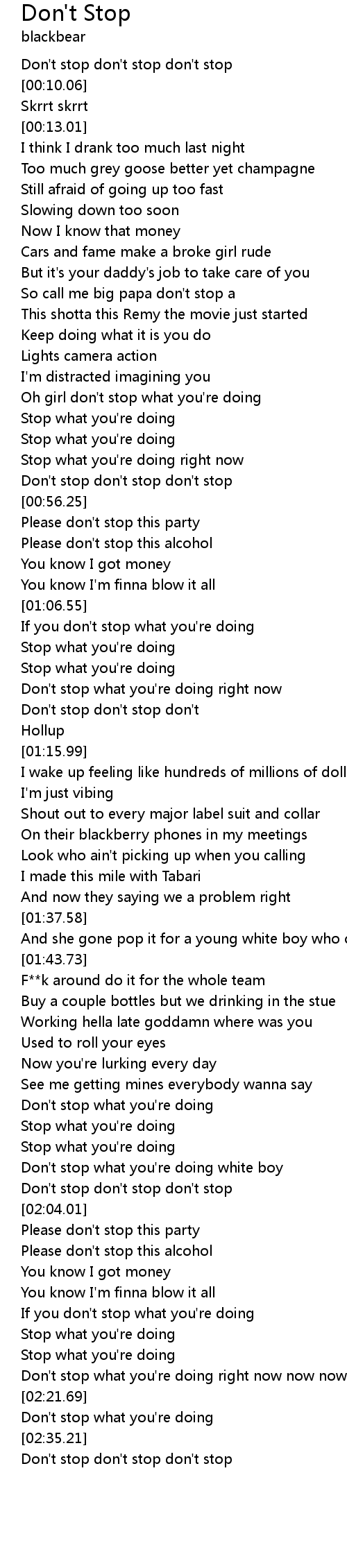 | [02:02.05] | Don't stop don't stop don't stop |