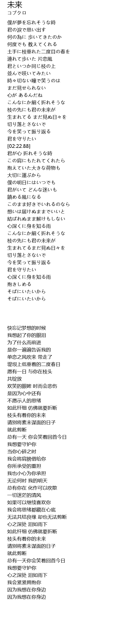 | [04:01.62] | 生まれてるまだ見ぬ日々を |