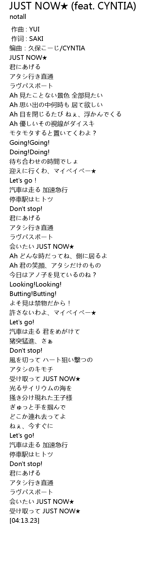 | [04:02.28] | 受け取って JUST NOW★ |