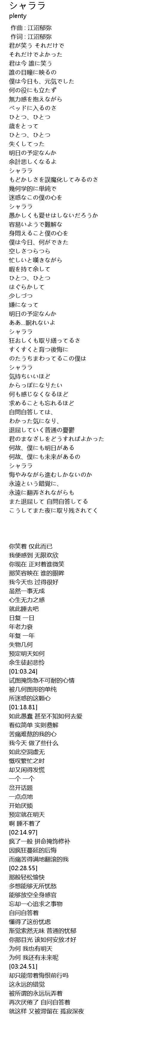 | [03:24.51] | シャララ |