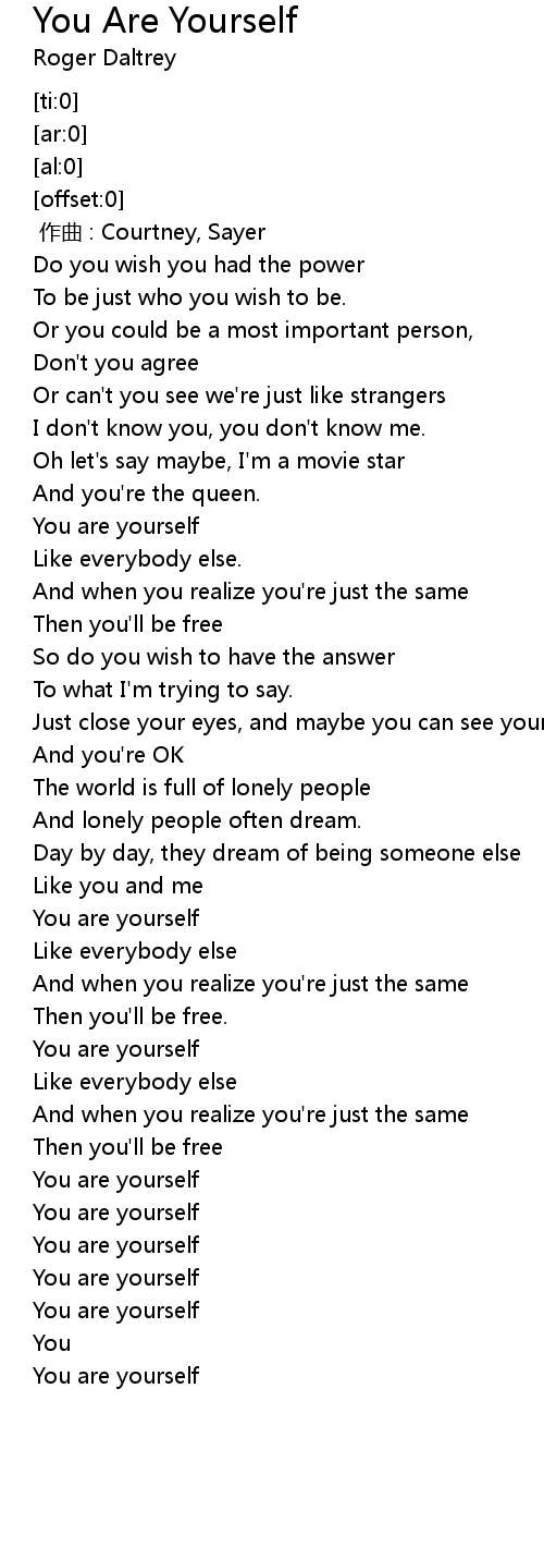 | [00:36.73] | Or can' t you see we' re just like strangers |
