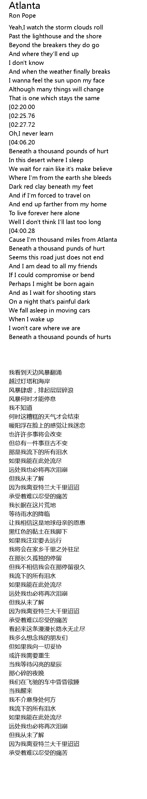 | [02:38.86] | Cause I'm thousand miles from Atlanta |