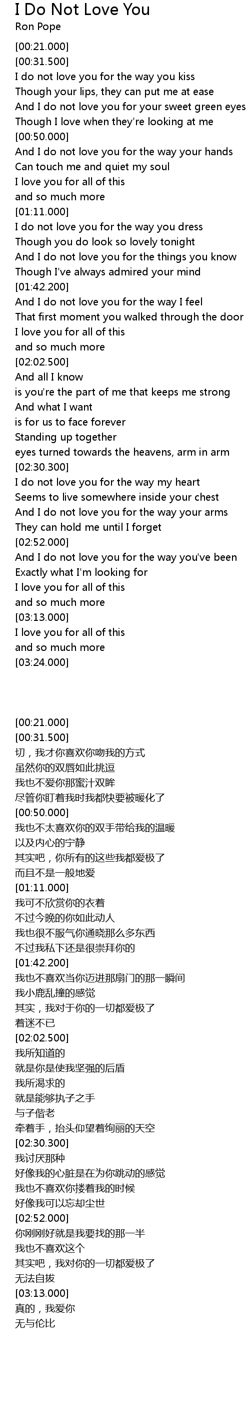 | [00:32.100] | I do not love you for the way you kiss |