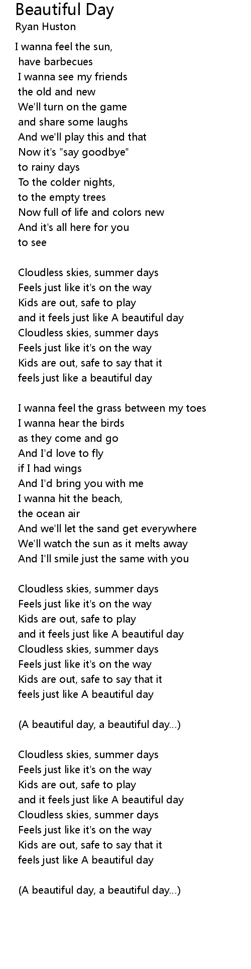| feels just like a beautiful day | |
