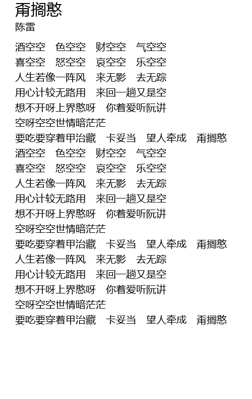 | [00:40.00] | 酒空空 色空空 财空空 气空空 |