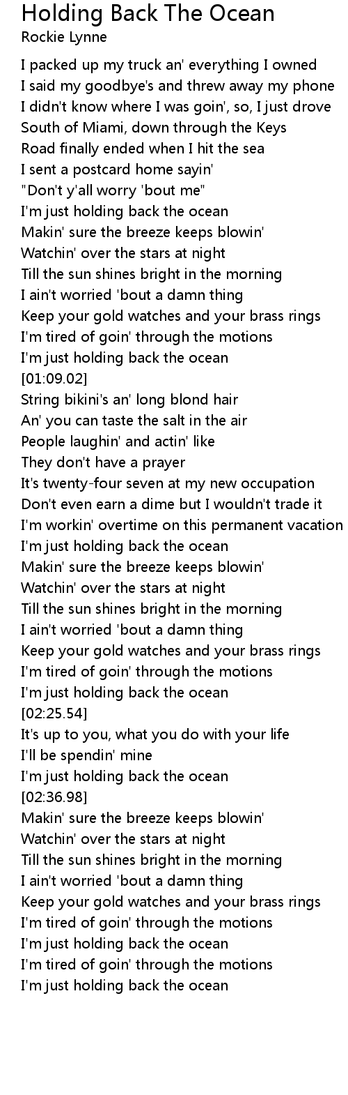 I'm just holding back the ocean |
