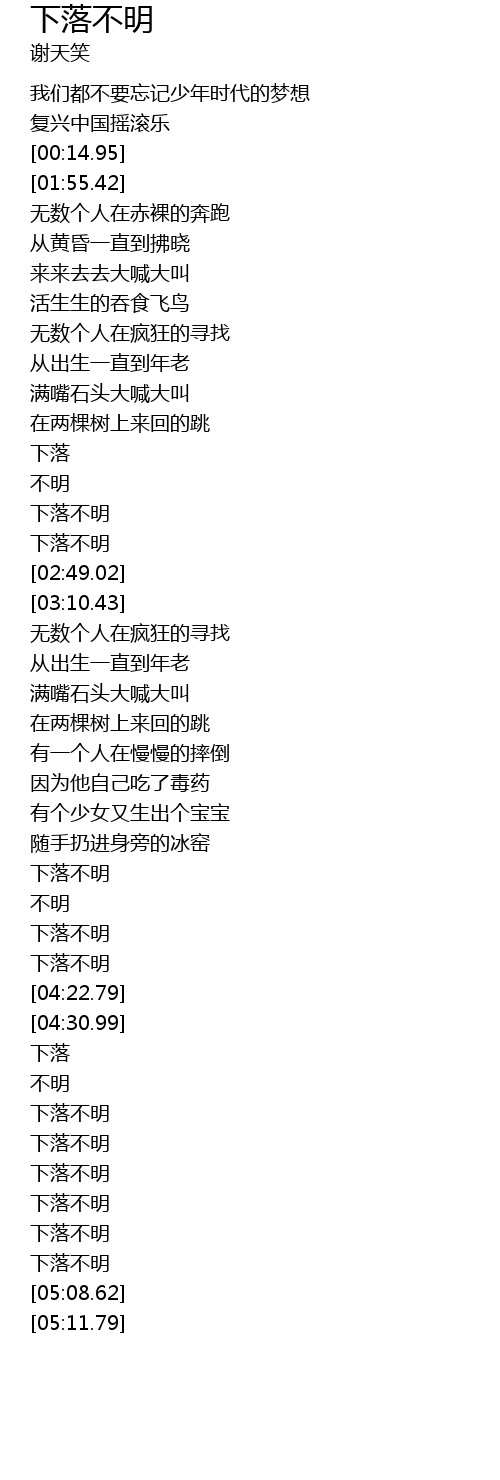 | [05:00.05] | 下落不明 |