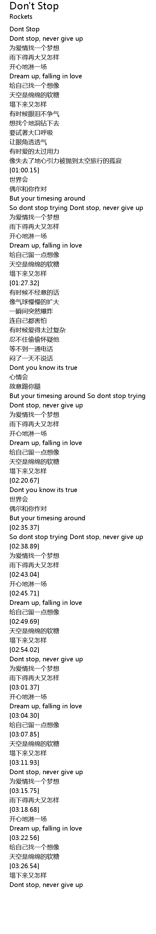 | [03:30.14] | Dont stop, never give up |