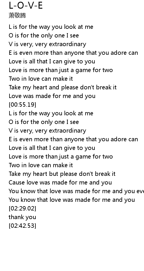 L is for the way you look at me |