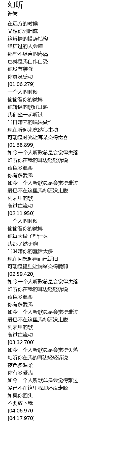 | [01:44.728] | 幻听你在我的耳边轻轻诉说 |