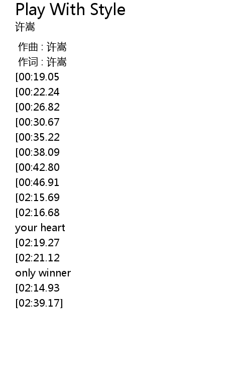 | [02:23.73][02:15.69][02:07.01][01:58.28][01:00.58][00:51.66] | Play with style |